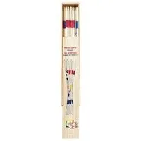 Klasyczna gra zręcznościowa ćwicząca cierpliwość i umiejętność koncentracji. Zestaw składa się z drewnianych patyczków o różnych wartościach punktowych zapakowanych w praktyczne drewniane pudełko z odsuwanym wieczkiem. Wymiary: dł. 28 cm Liczba graczy: 1 i więcej Czas gry: 15 min. OPIS GRY Bierki rozsypuje się na stole, następnie rozpoczyna się pojedyncze zbieranie patyczków przez poszczególnych graczy tak, by zdobyć jak najwyższą ilość punktów. Gracz traci kolejkę, gdy podczas wyciągania drgnie choćby jedna z pozostałych na stole bierek.