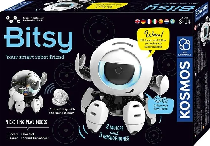Robot Bitsy to interaktywny, niezwykle uroczy robot zaprojektowany z myślą o dzieciach w wieku od ośmiu do czternastu lat, które mogą go samodzielnie złożyć z ponad 100 elementów. Bitsy zachwyca swoimi funkcjami, dając dzieciom okazję do nauki przez zabawę oraz rozwijania zdolności technicznych i kreatywności. Montaż jest wspomagany przez ilustrowaną instrukcję krok po kroku, która wprowadza młodych konstruktorów w świat robotyki i pomaga im złożyć robota w pełni funkcjonalnego. Po złożeniu wszystkie ruchome elementy - w tym ramiona - stają się częścią jego zgrabnej, kulistej konstrukcji, nadając Bitsy niepowtarzalny, futurystyczny wygląd. Oprócz tego, dzięki naklejkom wielokrotnego użytku, dzieci mogą nadawać Bitsy różnorodne wyrazy twarzy, co jeszcze bardziej podkreśla jego osobowość i sprawia, że robot wydaje się bardziej żywy.Bitsy reaguje na dźwięk, a jego zaawansowany system trzech czujników pozwala mu rozpoznawać i odpowiadać na różne sygnały dźwiękowe. Sterowanie tym robotem odbywa się poprzez proste kliknięcia i hałasy - wystarczy dźwięk, aby Bitsy zaczął podążać za użytkownikiem w trybie Follow-Me, w którym śledzi dźwięk, wykonując przy tym serię ruchów i efektów świetlnych oraz dźwiękowych. Dzieci mogą też eksperymentować, próbując różnych dźwięków i obserwując reakcje Bitsy, co wzbogaca zabawę o dodatkowy element odkrywania.Robot oferuje cztery unikalne tryby zabawy, które dostarczają długotrwałej frajdy i angażują dzieci na różne sposoby. Jednym z trybów jest popularna wersja przeciągania liny, w której Bitsy próbuje uciekać na swoich sześciu nóżkach, a gracze muszą zatrzymać go, wydając odpowiednie dźwięki. Inna ciekawa funkcja to tryb tańca - przy dźwiękach muzyki Bitsy porusza się w rytm melodii, co nadaje mu niemal taneczną ekspresję i jest źródłem dużej radości. Robot ten nie tylko rozwija zdolności manualne i techniczne, ale też pobudza wyobraźnię, pozwalając dzieciom wejść w interakcję z nowoczesną technologią w przyjazny i edukacyjny sposób.Robot Bitsy to nie tylko gadżet, ale przede wszystkim wciągająca przygoda, która łączy naukę z zabawą, angażując dzieci w proces tworzenia i eksplorowania. Dzięki efektom dźwiękowym i świetlnym, a także możliwości nadania mu własnego wyrazu, Bitsy staje się niemalże przyjacielem, który wędruje po pokoju z ciekawością, gotowy na nowe wyzwania.