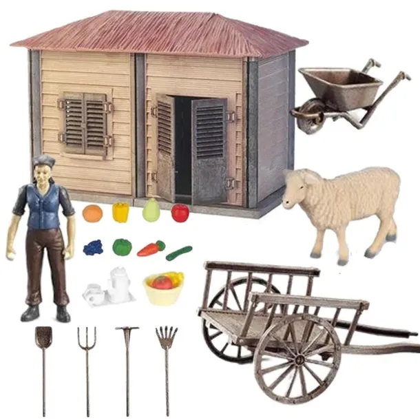 Dla każdego młodego miłośnika przygód na wsi, rolnictwa i zwierząt zestaw ten, to idealny sposób na spędzenie czasu, rozwijanie wyobraźni i tworzenia własnych opowieści.W zestawie znajduje się wszystko to, co potrzebne do stworzenia własnej farmy. Domek Rolnika to miejsce na wsi, gdzie można układać historie, odpoczywać i przyjmować gości. Każda farma potrzebuje swojego rolnika, który troszczy się o zwierzęta i uprawia pola - zatem figurka rolnika jest gotowa do akcji! Figurkę owcy można karmić, zabawiać i troszczyć się o nie na swojej farmie. Zestaw zawiera narzędzia rolnicze, takie jak łopata, widły i grabie. Dzięki nim można pomóc w pracach na farmie i utrzymać ją w doskonałym stanie. Zestaw zawiera: domek rolnika figurkę rolnika figurkę owcy, owoce i warzywa, taczki, narzędzia rolnicze, dzbanek To nie tylko zestaw do zabawy, to także narzędzie do rozwijania kreatywności, wyobraźni i umiejętności budowania. Tworzenie własnej farmy i opieka nad zwierzętami to wspaniała lekcja odpowiedzialności i rozwoju społecznych umiejętności. Z tym zestawem każdy dzień na wsi to pełna przygód przygoda! Wymiary opakowania: 35,5 x 30,5 x 7,5 cm