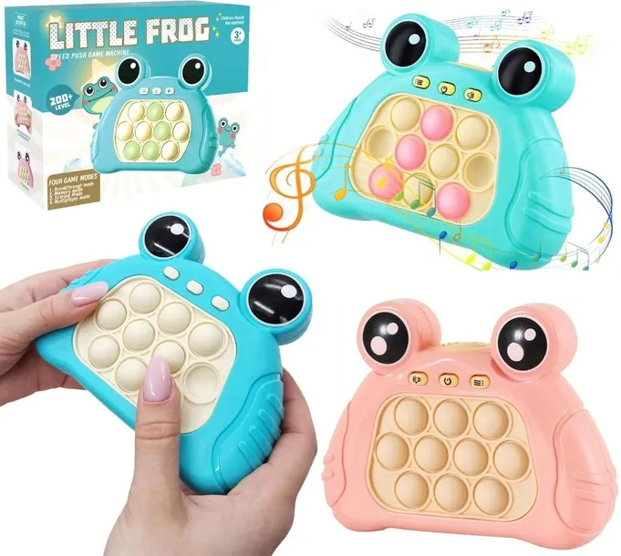 Gra Quick Pop - Żabka - Zręcznościowa Zabawa dla Dzieci - 200+ Poziomów Przetestuj swój refleks i szybkość z uroczą żabką! Gra Quick Pop "Żabka" to wciągająca i dynamiczna zabawa dla dzieci powyżej 3 roku życia. Zadaniem gracza jest jak najszybsze wciskanie podświetlonych przycisków, aby zdobyć jak najwięcej punktów. Gra oferuje cztery tryby zabawy i ponad 200 poziomów, co zapewnia długie godziny rozrywki. Zalety produktu: Rozwija refleks i szybkość: Gra wymaga szybkiej reakcji i zręczności. Cztery tryby zabawy: Różnorodność trybów zapewnia urozmaiconą zabawę. Ponad 200 poziomów: Wiele poziomów o różnym stopniu trudności gwarantuje długie godziny rozrywki. Efekty świetlne i dźwiękowe: Gra posiada efekty świetlne i dźwiękowe, które uatrakcyjniają zabawę. Uroczy motyw żabki: Żabka dodaje grze uroku. Łatwa obsługa: Gra jest łatwa w obsłudze, co pozwala na samodzielną zabawę. Bezpieczne materiały: Zabawka wykonana jest z bezpiecznych dla dzieci materiałów. Idealna na prezent: Doskonały pomysł na prezent dla dzieci w wieku przedszkolnym i wczesnoszkolnym. Specyfikacja: Nazwa: Gra Quick Pop - Żabka Wiek: 3+ Liczba poziomów: 200+ Tryby zabawy: 4 Funkcje: Efekty świetlne i dźwiękowe Materiał: Tworzywo sztuczne Wielkość: 15x12x6 cm Gra Quick Pop "Żabka" to doskonały sposób na rozwijanie refleksu i świetną zabawę!MIX - wysyłka losowa.