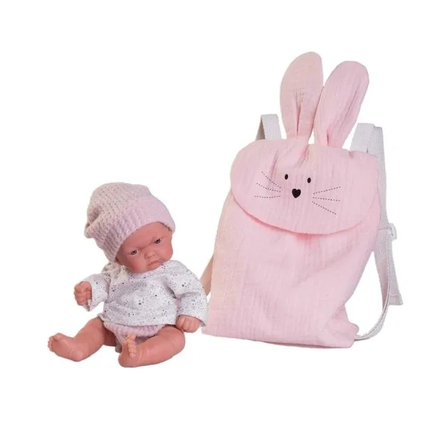 Urocze maleństwo z plecakiem o imieniu Pitu 84091 to model z najnowszej kolekcji 2023 oferowanej przez hiszpańską markę Antonio Juan. Lala ma 26 cm wzrostu. Bobas jest anatomiczny i posiada zaznaczoną płeć (dziewczynka). Urocze rysy twarzy podkreśla jednolita, jasnoróżowa czapka. Dziewczynka nie ma rzęs, brwi oraz włosów, dlatego też laleczka jest całkowicie bezpieczna dla Twojego dziecka. Produkt przeznaczony jest do zabawy dla dzieci powyżej 2 roku życia. Ta mała postać wyróżnia się wielkim realizmem. Drobne ciało wykonane ze specjalnego i przyjemnego w dotyku winylu. Zastosowane tworzywo sprawia, że ułożysz niemowlę w wielu pozycjach w tym siedzącej, poprzez delikatne zgięcie nóżek. Autentycznie odwzorowany maluszek ma świetnie zaznaczone linie papilarne, fałdki, dołeczki, a nawet pępek jak u prawdziwego dziecka. Wszystko sprawia, że maluszek wygląda jak żywy! Niewielkiego bobasa wyposażono w białą bluzeczkę w gwiazdki i szorty na gumce. Nogawki spodenek zostały zakończone gumeczkami tak, aby świetnie prezentowały się na nóżkach maluszka. Elementem uzupełniającym zestaw będzie słodki plecak z regulowanymi szelkami i zabawnymi małymi uszkami, z którym można się bawić i cieszyć się pięknymi spacerami i tysiącem przygód. Hiszpański bobas ma duże niebieskie oczy, zaś na główce nie posiada włosków, jedynie występują rzeźbienia imitujące delikatne włoski, które wyglądem przypominają jak u prawdziwego noworodka. Bobas jest niewielki, dlatego sprawdzi się na wszelkie wyjścia oraz przyjęcia do rodziny czy wyjazd wakacyjny. Słodkie maleństwo od dziś będzie towarzyszyć gdziekolwiek pójdziesz. W asortymencie lalek Antonio jest wiele różnych Pitusów ile jest prawdziwych dzieci, więc znajdziesz odpowiedni model dla siebie w pięknych stylizacjach z uroczymi dodatkami. Pitu została zapakowana w beżowe kartonowe pudełko ozdobione drobną grafiką w serduszka i gwiazdki. Dodatkowo na jego powierzchni widnieje oryginale logo hiszpańskiej marki Antonio Juan. Co więcej, tak skomponowana laleczka to wspaniały produkt jako zakup pierwszej laleczki czy doskonała propozycja na upominek. Dzięki pięknemu kartonowi nie musisz martwić się o dodatkowe opakowanie ozdobne, gdyż sam w sobie karton prezentuje się wspaniale. Marka Antonio Juan dba o każdy ze swoich produktów i wykonuje je z należytą starannością i wielką precyzją. Co więcej każdą z laleczek wyposaża w gustowne stylizacje świetnie pasujące do parametrów laleczki. Niektóre bobasy posiadają dodatki, które urozmaicą zabawę hiszpańską laleczką. Zabawa taką lalą zapewni wiele niezapomnianych wspomnień, a młode pociechy będą zachwycone wyglądem, funkcjonalnością oraz dodatkowymi akcesoriami dołączonymi do kompletu.
