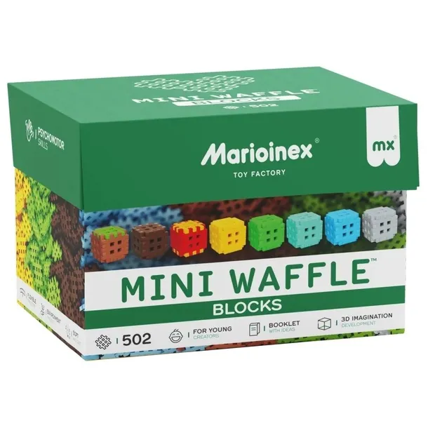 Mini Waffle Blocks 502To jest zestaw dla prawdziwych mistrzów budowania!Mini Waffle Blocks 502 oferuje aż 502 elementy, które tworzą najbardziej imponującą kolekcję barw: soczystą trawę, stabilną ziemię, chłodną stal, mieniące się kryształy, iskrzącą lawę, czystą wodę, błyszczące złoto i wyjątkowy, drogocenny zielony minerał dostępny tylko w tym zestawie.Dzięki 124 łącznikom możesz tworzyć monumentalne konstrukcje wysokie, szerokie, fantazyjne takie, które stają się prawdziwymi dziełami wyobraźni. To zestaw, który naprawdę rośnie razem z Twoimi pomysłami.Klocki Marioinex zostały stworzone z miękkiego, elastycznego materiału, który jest przyjemny w dotyku i w pełni bezpieczny dla dzieci. Ich kształt idealnie pasuje do małych dłoni, dzięki czemu budowanie jest wygodne i satysfakcjonujące.Wszystkie zestawy Mini Waffle możesz ze sobą łączyć rozbudowując konstrukcje, dodając nowe kolory i tworząc coraz większe, bardziej kreatywne światy. Cechy zestawu Mini Waffle Blocks 502:502 elementy (w tym 124 łączniki)nieograniczone możliwości tworzenia i eksperymentowaniawspiera kreatywność, logiczne myślenie i budowanie złożonych formzapewnia długą, angażującą rozrywkęodpowiedni dla dziewczynek i chłopcówmiękkie, elastyczne i bezpieczne klockiświetny również do wspólnej zabawy z dorosłymiwyprodukowane w Polsceprzeznaczone dla dzieci od 3. roku życia