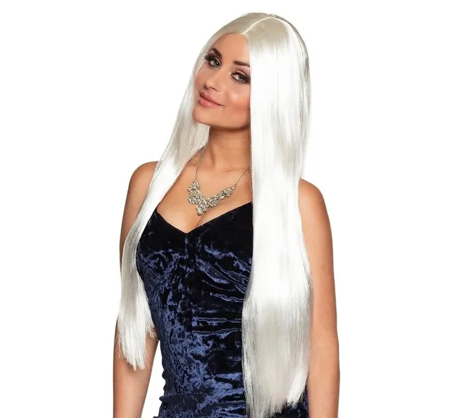 PERUKA BIAŁE DŁUGIE WŁOSY Rozmiar: uniwersalny Długość: 72 cm Kolor: biały Materiał: poliester Ilość sztuk w opakowaniu: 1 Producent: Boland Peruka posiada siateczkę, która stabilnie utrzymuje ją na włosach