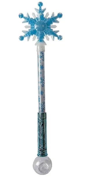 Świecąca różdżka do zabawy o wysokości 54 cm, na zakończeniu płatek śniegu. Zabawka zasilana 3 bateriami AA, nie dołączone.
