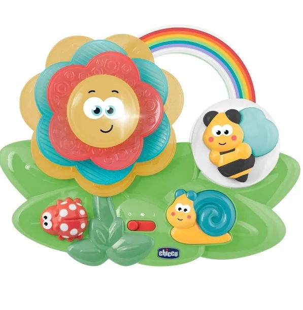 SENSORYCZNY KWIATEK - zabawka dla najmłodszych pomagająca rozwijać zdolność koncentracji!Kategoria wiekowa: 6M-3L Posiada miękkie, różnokolorowe płatki kwiatka o różnych teksturach rozwijających zmysł dotyku.Po umieszczeniu płatka kwiat zaczyna świecić delikatnym światłem w kolorze płatka i uruchamia się muzyka sprzyjająca koncentracji. Dźwięk możemy wyłączyć aby pomóc dziecku skupić uwagę tylko na wykonywanej czynności i bodźcach świetlnych. Sensoryczny kwiatek zawiera aż 4 różne aktywności manualne:- układanie płatków kwiatka,- przesuwanie guzika w kształcie biedronki,- przyciskanie guzika w kształcie ślimaka,- przełączanie guzika w kształcie pszczoły. Zabawka uczy koncentracji i skupiania uwagi dzięki:- delikatnym efektom świetlnym z efektem wygaszania,- muzyce z odgłosami natury,- możliwości wyciszenia muzyki, aby dziecko skupiło się tylko na wykonywanej czynności i efektach świetlnych.Zabawka powstała przy współpracy neuropsychiatrów i pedagogów. Zabawka przeznaczona jest dla dzieci w wieku: 6-36MWymiary zabawki: 25 x 20 x 6 cmZabawka działa na 3 baterie typu AA 1,5V (w zestawie)