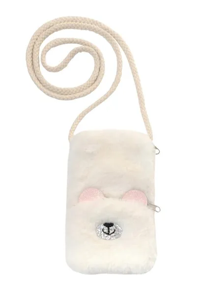 Torebka na telefon miś. Główna komora zamykana na zamek. Dodatkowa kieszonka na drobiazgi. Kolor kremowy.
